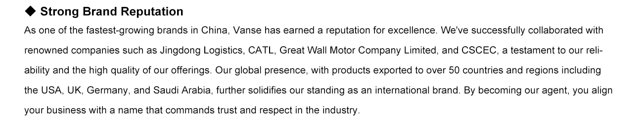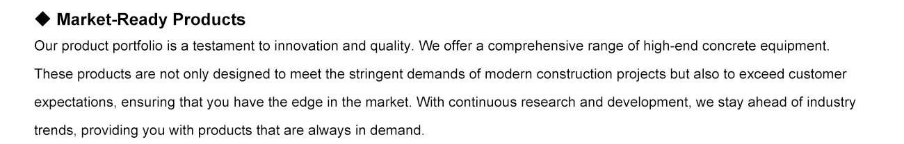 ผลิตภัณฑ์หลัก:เครื่องปรับระดับคอนกรีตด้วยเลเซอร์, เกรียงไฟฟ้า, ที่เกลี่ยเกลี่ยหน้า, ที่ปูด้วยระบบกันลื่น, ข้อต่อเกราะ